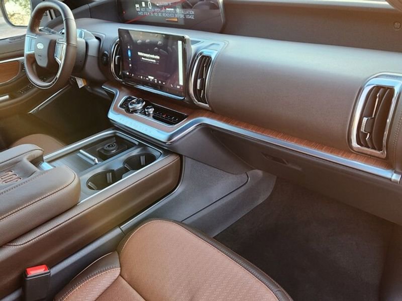 2025 Ford Expedition MAX King Ranch 4WD Sebring, FL. Spacious, powerful, and refined, this Ford Expedition MAX King Ranch pairs a robust V6 3.5L gasoline engine with four-wheel drive for confident towing and smooth highway cruising. Perfect for families or adventure seekers, the King Ranch trim adds premium leather, distinctive styling, and advanced comfort features for long trips and daily drives. This model includes must-have tech and safety upgrades: Adaptive Cruise Control for relaxed highway miles, Navigation to guide your road trips, Hands-Free Bluetooth for seamless connectivity, a Back-Up Camera for easier parking, and a Heated Steering Wheel for chilly mornings. The expansive interior offers third-row seating, generous cargo capacity, and King Ranch luxury appointments designed for both utility and elegance. Located in Sebring, FL, this Ford Expedition MAX is competitively priced and advertised as the best price in the area exceptional value for a top-trim full-size SUV with low miles and factory features intact. Whether you need towing capability, passenger space, or premium amenities, this vehicle delivers. Schedule a test drive in Sebring today and experience the combination of performance, comfort, and advanced technology that sets this 2025 Ford Expedition MAX King Ranch apart. Competitive financing options available.