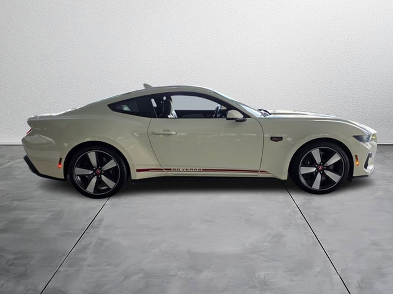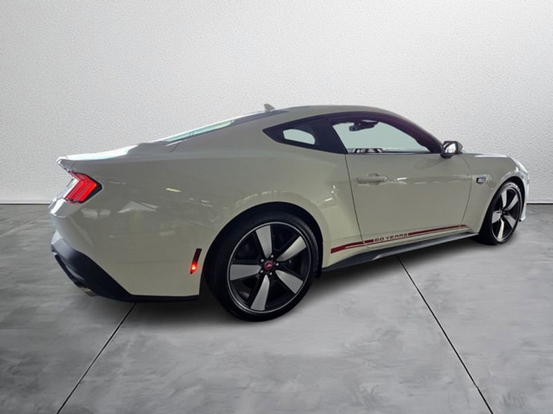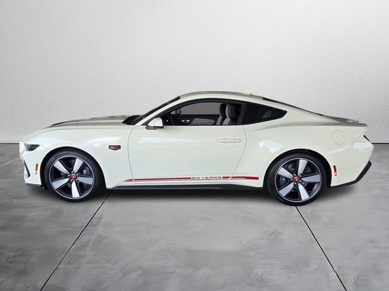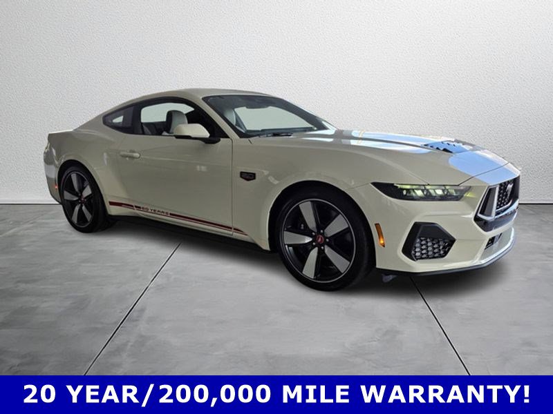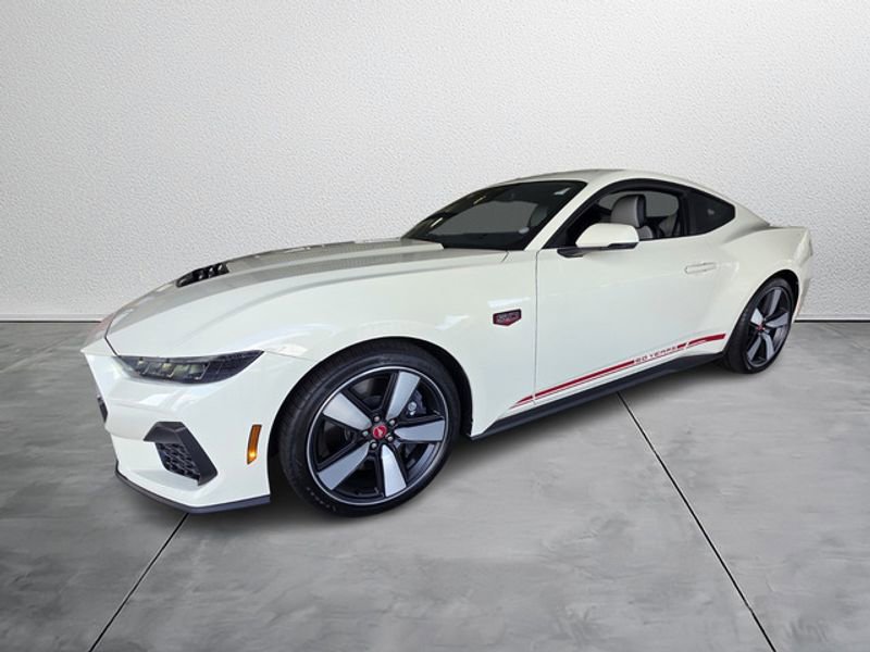 Equipment Group 401A High Package: Illuminated Door-Sill Scuff Plates; Leather-Trimmed Bucket Seats with Color Accents; 5.0L Ti-VCT V8 Engine; 19" X 8.5" Shadow Silver-Painted Aluminum; 19" Tires; AM/FM Stereo; Driver Seat and Mirrors Memory. Ford Co-Pilot360 Assist+: Adaptive Cruise Control with Stop and Go; Connected Navigation; Pre-Collision Assist with Automatic Emergency Braking; Lane-Keeping System with Lane Keeping Aid. Security Package: Active Anti-Theft System; Locking Center Console; Wheel Locking Kit. 60th Anniversary Package: Anniversary Special Edition Badge; Silver Painted Mirror Caps; Painted High Gloss Black Honeycomb Grille; Headlamps with Black Bezels; Spoiler Delete. Premier Trim with Color Accent Group: Instrument Panel with Accent Stitch. Brembo Brake System with Performance Linings. Active Valve Performance Exhaust. B&O Sound System by Bang & Olufsen with 12 Speakers. Wimbledon White. **Equipment listed is based on original vehicle build and subject to change. Please confirm the accuracy of the included equipment by calling the dealer prior to purchase.** 100% Transparent Pricing.
