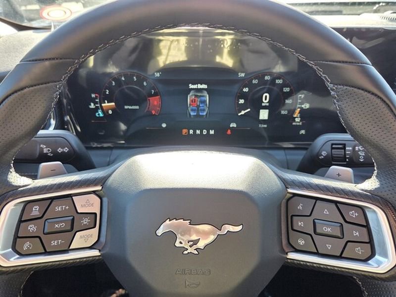 Mustang Nite Pony Package. Equipment Group 401A High Package: Leather-Trimmed Bucket Seats with Color Accents; 5.0L Ti-VCT V8 Engine; Perimeter Alarm; 19" X 8.5" Shadow Silver-Painted Aluminum; Magnesium Framed Panoramic Curved Display; AM/FM Stereo; Driver Seat Memory with 3 Settings; Aluminum Foot Pedals. Premier Trim with Color Accent Group: Instrument Panel with Accent Stitch. Ford Co-Pilot360 Assist+: Adaptive Cruise Control with Stop and Go; One-Year Connected Navigation; Pre-Collision Assist with Automatic Emergency Braking; Lane-Keeping System with Lane Keeping Aid. B&O Sound System by Bang & Olufsen with 12 Speakers. Magnesium Framed Panoramic Curved Display. Ford Connectivity Package (one-Time Purchase - 7 Years). Mini Spare Wheel and Tire. **Equipment listed is based on original vehicle build and subject to change. Please confirm the accuracy of the included equipment by calling the dealer prior to purchase.** 100% Transparent Pricing.