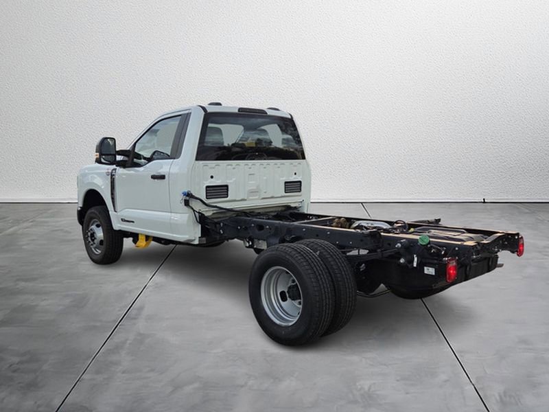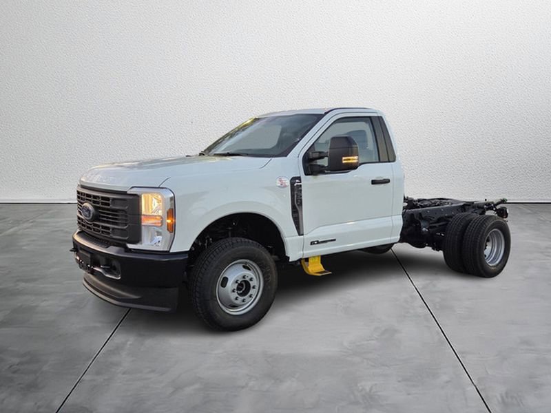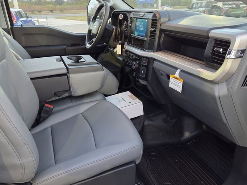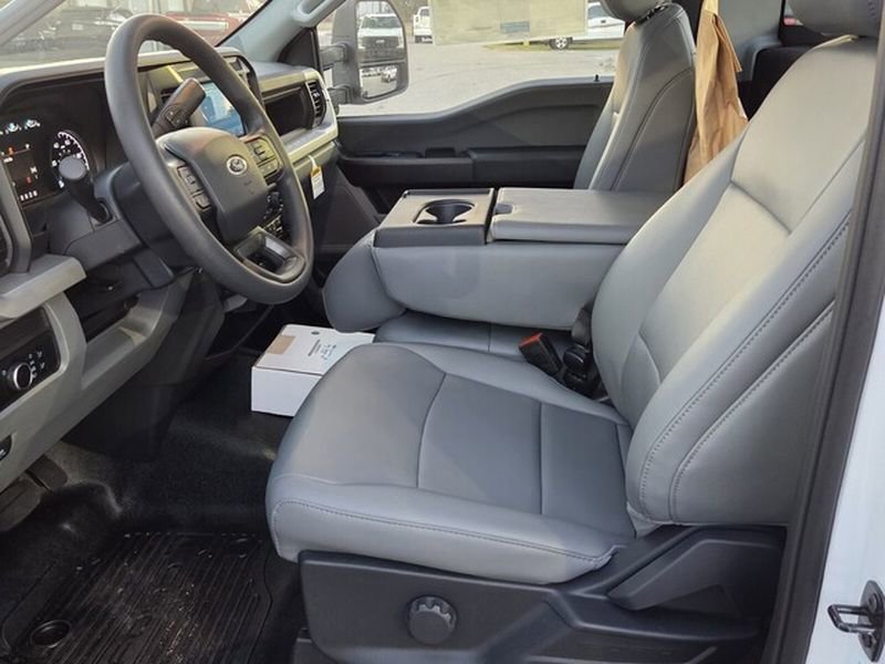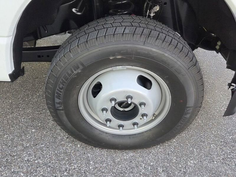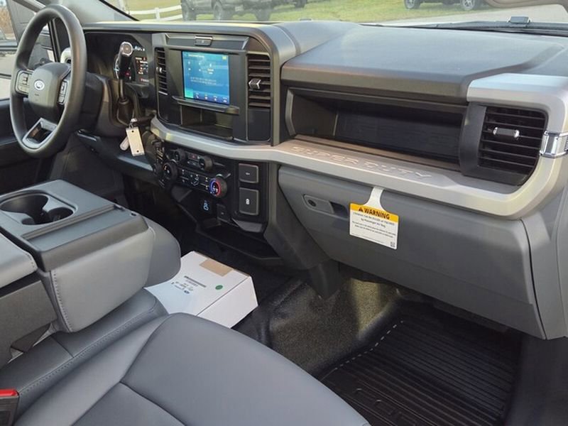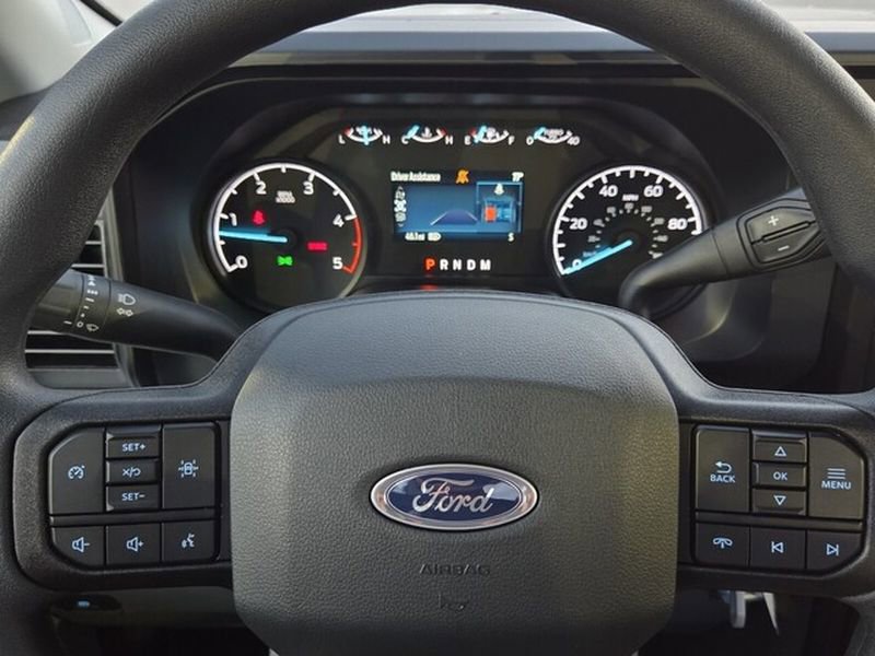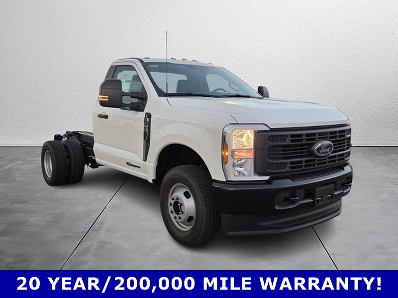 Exterior features of the F-350 DRW XL include Autolamp headlamps, wiper-activated headlamps, and heated power mirrors with manual fold and turn signals. For added functionality, it is equipped with roof clearance lights, tow hooks, trailer sway control, and a trailer tow wire harness. Inside, the vehicle offers practical features such as a 4.2" cluster display, manual front air conditioning, and power locks and windows. Safety is prioritized with Advancetrac™ with RSC®, Safety Canopy® airbags, and a Tire Pressure Monitoring System. The vehicle is backed by a comprehensive warranty, including 3 years/36,000 miles bumper-to-bumper and 5 years/100,000 miles on the diesel engine.