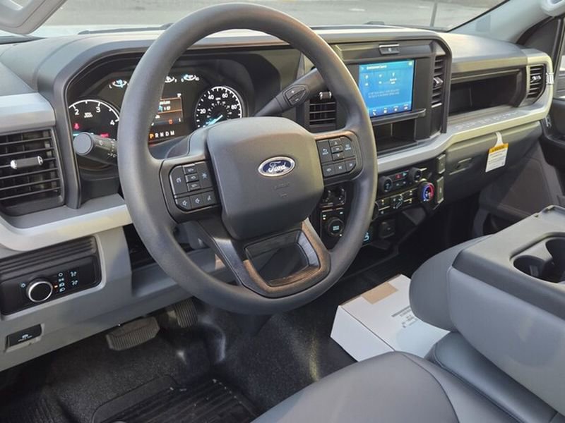 The 2026 Ford Super Duty F-350 DRW XL comes equipped with a robust 10-Speed Auto Torqshift transmission and a 6.7L Power Stroke V8 Diesel engine, making it a formidable choice for heavy-duty tasks. This model features the 14000 Lbs. GVWR Package and a 4.10 Ratio Limited Slip Axle, enhancing its towing and payload capabilities. Additional optional equipment includes a 40 Gal Aft-Axle Fuel Tank and dual batteries, ensuring extended driving range and reliability. The vehicle is compliant with 50 State Emissions standards and includes a Conn Package with a one-year subscription to the Ford App for enhanced connectivity.