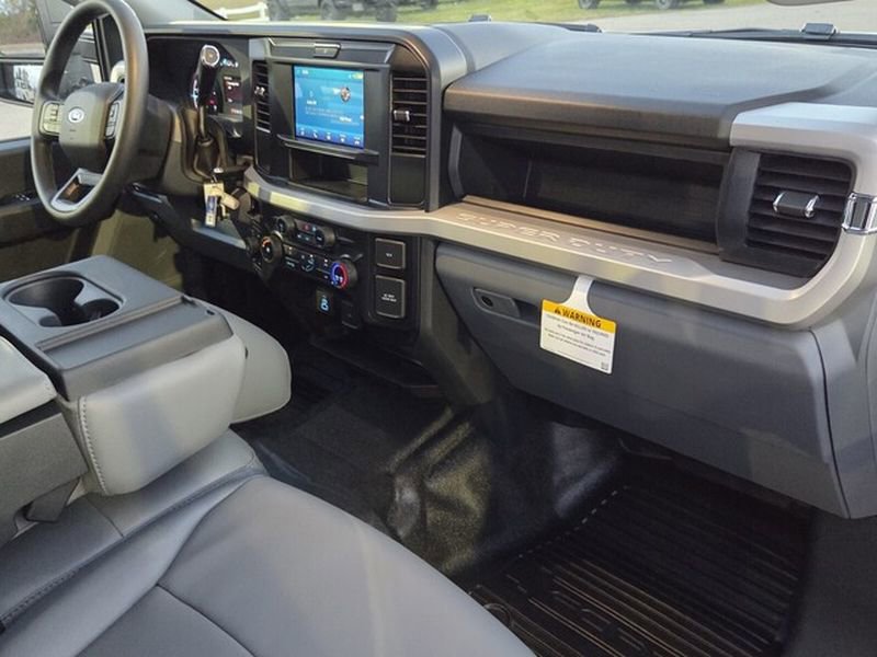The 2026 Ford Super Duty F-350 SRW XL is equipped with a robust Intercooled Turbo Diesel V-8 6.7 L/406 engine, complemented by a 10-Speed Auto Torqshift transmission. Notable optional equipment includes a Power Sliding Rear Window, Privacy Glass, and a 3.55 Electronic-Locking Axle, enhancing both functionality and comfort. The vehicle's 12400 lbs. GVWR Package and Dual Battery system underscore its capability to handle demanding tasks. Additionally, the Backglass Defrost and Wheel Well Liners contribute to its practicality in various conditions.