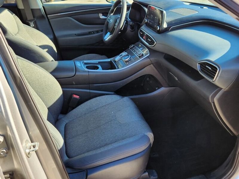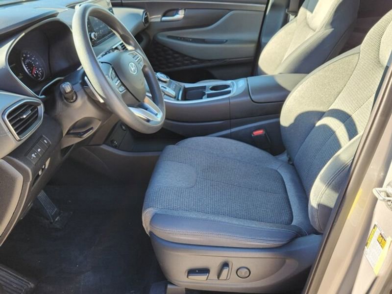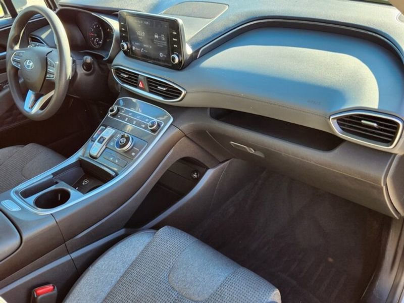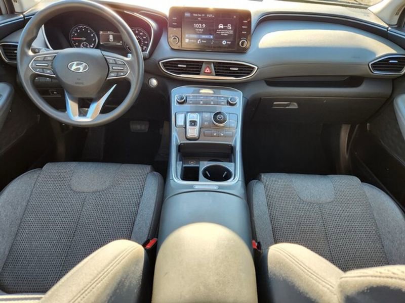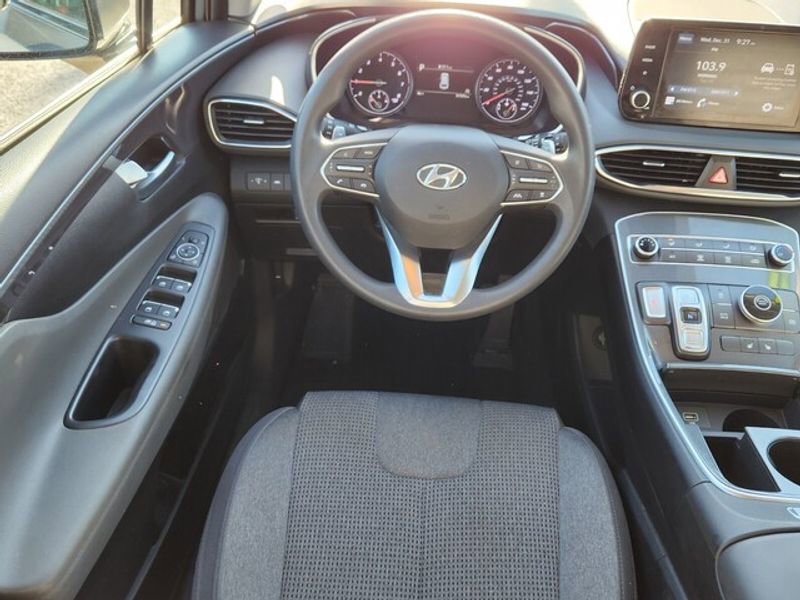 This 2021 Hyundai Santa Fe features a hands-free Bluetooth phone system. Apple CarPlay: Seamless smartphone integration for this vehicle - stay connected and entertained on the go! This 2021 Hyundai Santa Fe stays safely in its lane with Lane Keep Assist. This 2021 Hyundai Santa Fe has a clean AutoCheck report, ensuring its impeccable vehicle history. Protect this model from unwanted accidents with a cutting edge backup camera system. The vehicle offers Android Auto for seamless smartphone integration. Start it from inside with remote start. This Hyundai Santa Fe has only one previous owner, verified by AutoCheck. Quickly unlock this vehicle with keyless entry. The Hyundai Santa Fe shines with an exquisite metallic silver exterior finish. Front wheel drive on this 2021 Hyundai Santa Fe gives you better traction and better fuel economy. The vehicle has a 4 Cyl, 2.5L high output engine. Maintaining a stable interior temperature in this mid-size suv is easy with the climate control system.