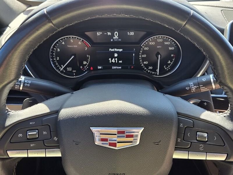 It's Lane Departure Warning helps keep you in your lane. The vehicle has only one previous owner, verified by AutoCheck. Protect this 2023 Cadillac CT5 from unwanted accidents with a cutting edge backup camera system. Lane Keep Assist in this unit helps maintain safe driving by gently steering to stay within the lane. Never get into a cold vehicle again with the remote start feature on the vehicle. The state of the art park assist system will guide you easily into any spot. The leather seats in this 2023 Cadillac CT5 are a must for buyers looking for comfort, durability, and style. This 2023 Cadillac CT5 offers Apple CarPlay for seamless connectivity. The Cadillac CT5 features a hands-free Bluetooth phone system. This model comes equipped with Android Auto for seamless smartphone integration on the road. This large car has automated speed control that adjusts to maintain a safe following distance, enhancing highway driving convenience.