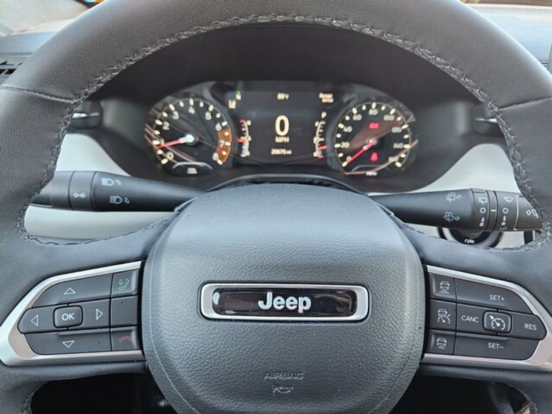 This 2023 Jeep Compass has automated speed control that adjusts to maintain a safe following distance, enhancing highway driving convenience. The leather seats in it are a must for buyers looking for comfort, durability, and style. The Jeep Compass's Forward Collision Warning feature alerts drivers to potential front-end collisions. Bluetooth technology is built into this unit, keeping your hands on the steering wheel and your focus on the road. The vehicle has a clean AutoCheck report. This unit's AutoCheck: 1 owner, assurance of single-owner history for peace of mind. It offers Apple CarPlay for seamless connectivity. This model offers Android Auto for seamless smartphone integration. This mid-size suv keeps you comfortable with Auto Climate. Protect this vehicle from unwanted accidents with a cutting edge backup camera system. Keep your hands warm all winter with a heated steering wheel in this 2023 Jeep Compass . Start this 2023 Jeep Compass from inside with remote start.