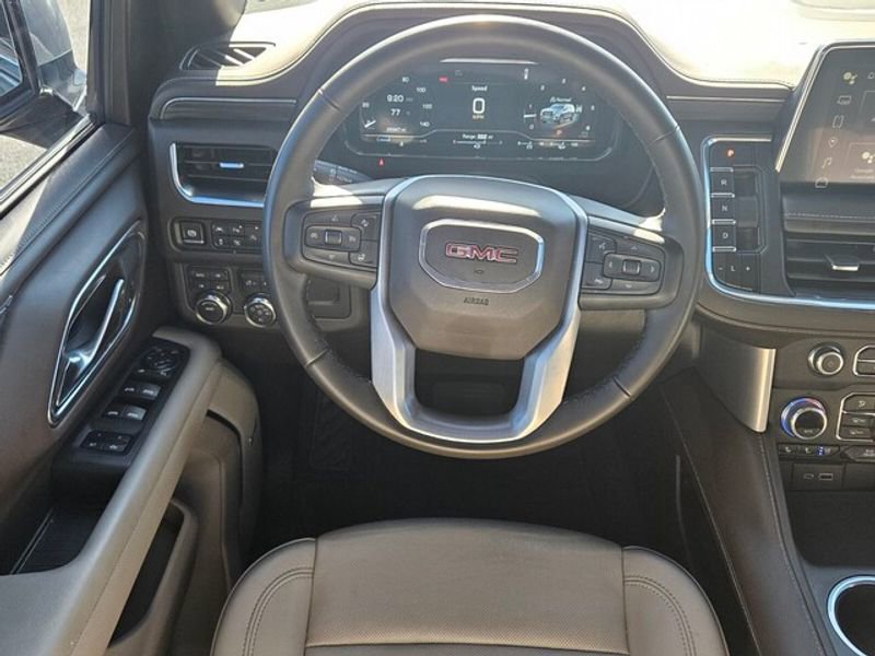 SLT Luxury Package: HD Surround Vision; Heated 2nd Row Outboard Position Seats; Power Release 2nd Row 60/40 Split-Folding Bench Seat; 2 Presets For Outside Rearview Mirrors; Power Tilt and Telescopic Steering Column; Rear Pedestrian Alert; Heated Steering Wheel; 3rd Row 60/40 Power-Folding Split-Bench Seat; Enhanced Automatic Emergency Braking; Adaptive Cruise Control; Outside Heated Power-Adjustable Mirrors Preferred Equipment Group 4SA: Bright Front and Rear Door Sill Plates; Bright Chrome Bodyside Moldings; Hands-Free Power Programmable Rear Liftgate; Bose 9-Speaker Stereo Audio System Feature; 12-Way Power Seat Adjusters; Safety Alert Seat; Chrome Door Handles with Body-Color Strip; GMC Pro Safety Plus; Perforated Heather and Ventilated Driver and Front Passenger Seats; Inside Rearview Auto-Dimming Mirror; 2 Presets For Power Driver Seat; Heated Driver and Front Passenger Seats; 20" X 9" 6-Spoke Polished Aluminum Wheels; Wireless Charging; Universal Home Remote; 275/60R20SL All-Season Blackwall Tires Power Release 2nd Row Bucket Seats