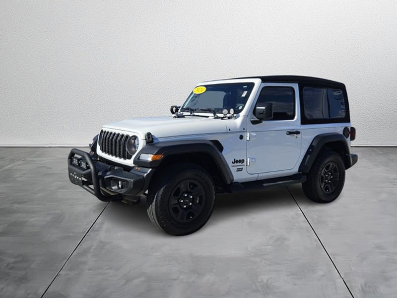 This model has only one previous owner, verified by AutoCheck. This model has a clean AutoCheck report. This unit offers Apple CarPlay for seamless connectivity. Bluetooth technology is built into this 2024 Jeep Wrangler , keeping your hands on the steering wheel and your focus on the road. An off-road package is installed on this vehicle so you are ready for your four-wheeling best. This 2024 Jeep Wrangler has auto-adjust speed for safe following. Protect it from unwanted accidents with a cutting edge backup camera system. This model offers Android Auto for seamless smartphone integration. This vehicle shines with clean polished lines coated with an elegant white finish. When you encounter slick or muddy roads, you can engage the four wheel drive on this model and drive with confidence. Maintaining a stable interior temperature in this Jeep Wrangler is easy with the climate control system. The Jeep Wrangler has a V6, 3.6L high output engine.