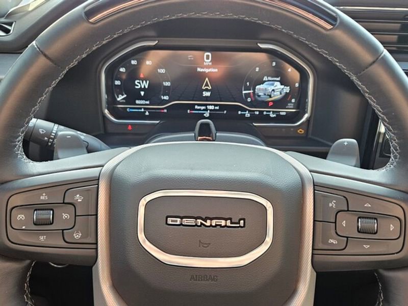 Technology Package: Multicolor 15" Diagonal Head-Up Display; Rear Camera Mirror. Preferred Equipment Group 5SA: Trailer Side Blind Zone Alert; Chrome Wheel to Wheel Assist Steps; Power Sliding Rear Window with Rear Defogger; Ultrasonic Front and Rear Park Assist; Trailer Camera Provisions; Electric Rear-Window Defogger; Theft Deterrent System (unauthorized Entry); Chrome Header with Signature Denali Chrome Grille; Front Rain-Sensing Wipers; Heavy-Duty Air Filter; 120-Volt Interior Power Outlet; Heated Driver and Front Outboard Passenger Seating; Wireless Charging; Color-Keyed Carpeting Floor Covering; OnStar Services Capable; Heated 2nd Row Outboard Seats; Power Front Passenger Windows with Express Up/down; Premium Bose 7-Speaker Sound System; Power Rear Windows with Express Down; Integrated Trailer Brake Controller; HD Surround Vision; Ventilated Driver and Front Passenger Seats; Power Rake and Telescoping Steering Column; Keyless Open and Start; Perimeter Lighting; Push Button Start; LED Cargo Area Lighting; Remote Vehicle Starter System; In-Vehicle Trailering System App; Hill Descent Control; Floor-Mounted Center Console; 170 Amp Alternator; Bed View Camera; Auxiliary External Transmission Oil Cooler; Rear Cross Traffic Braking; GMC Pro Safety; Trailering Package; 2 USB Ports; 2 Charge/data USB Ports Inside Center Console; Chrome Recovery Hooks; Denali Premium Suspension with Adaptive Ride Control; Steering Wheel Audio Controls; 2 type-C Charge-Only Rear USB Ports; Universal Home Remote; 2-Speed Transfer Case; Deep-Tinted Glass; Spray-On Pickup Bedliner with GMC Logo; SiriusXM with 360L Trial Subscription; Hitch View; Power Front Windows with Driver Express Up/down; Rear Pedestrian Detection; Wi-Fi Hotspot Capable; Rear Wheelhouse Liners; Auto-Locking Rear Differential; Power Door Locks. Denali Reserve Super Package: Super Cruise Wrapped Steering Wheel; GMC MultiPro Power Steps; Power Sunroof; Super Cruise; 22" X 9" Painted Aluminum Wheels. Super Cruise. GMC MultiPro Power Steps. Power Sunroof. Titanium Rush Metallic. Dual Active Exhaust. Wheel Locks (set of 4). **Equipment listed is based on original vehicle build and subject to change. Please confirm the accuracy of the included equipment by calling the dealer prior to purchase.** 100% Transparent Pricing.